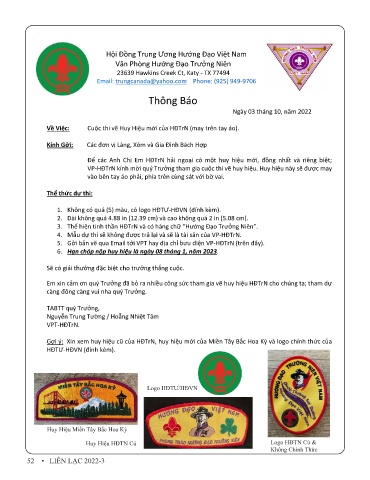 Về Việc: Cuộc thi vẽ Huy Hiệu mới của HĐTrN (may trên tay áo).