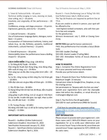 instruments, cultural themes) – 15 points FREE: Any performance that includes a Scout (Đoàn