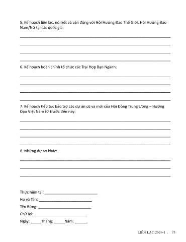 5. Kế hoạch liên lạc, nối kết và vận động với Hội Hướng Đạo Thế Giới, Hội Hướng Đạo